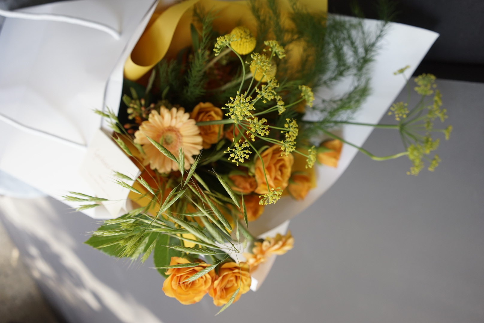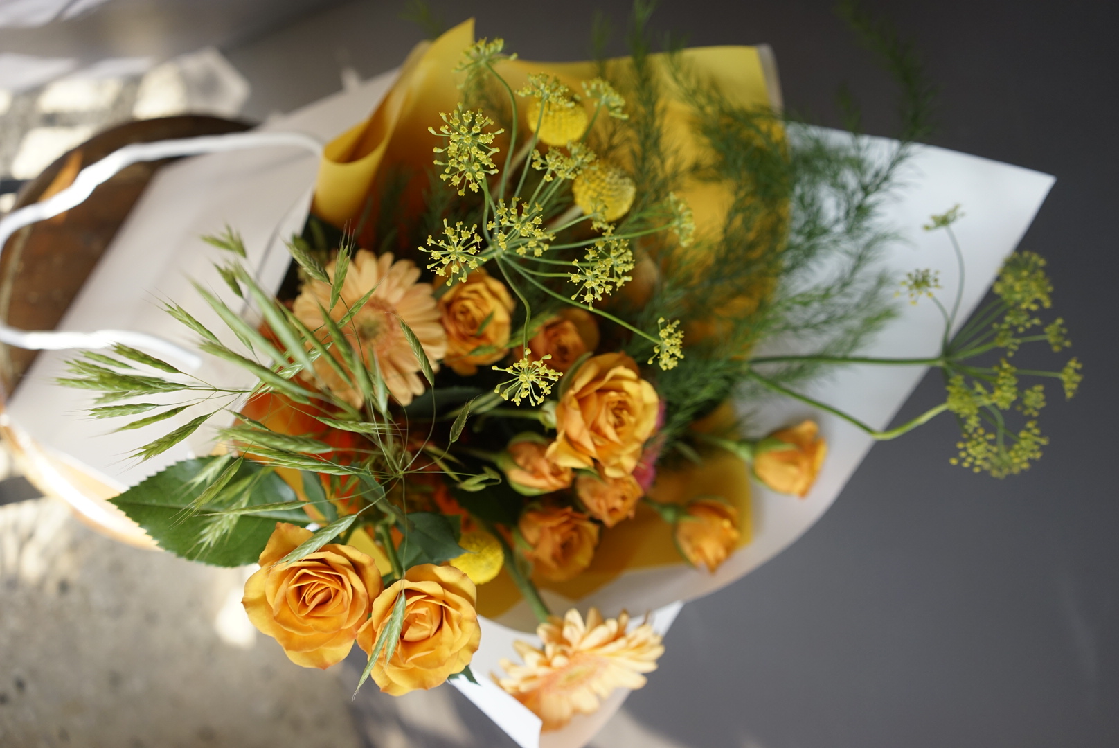 여름의 밝은 노랑 톤으로 준비해드린 꽃다발입니다.